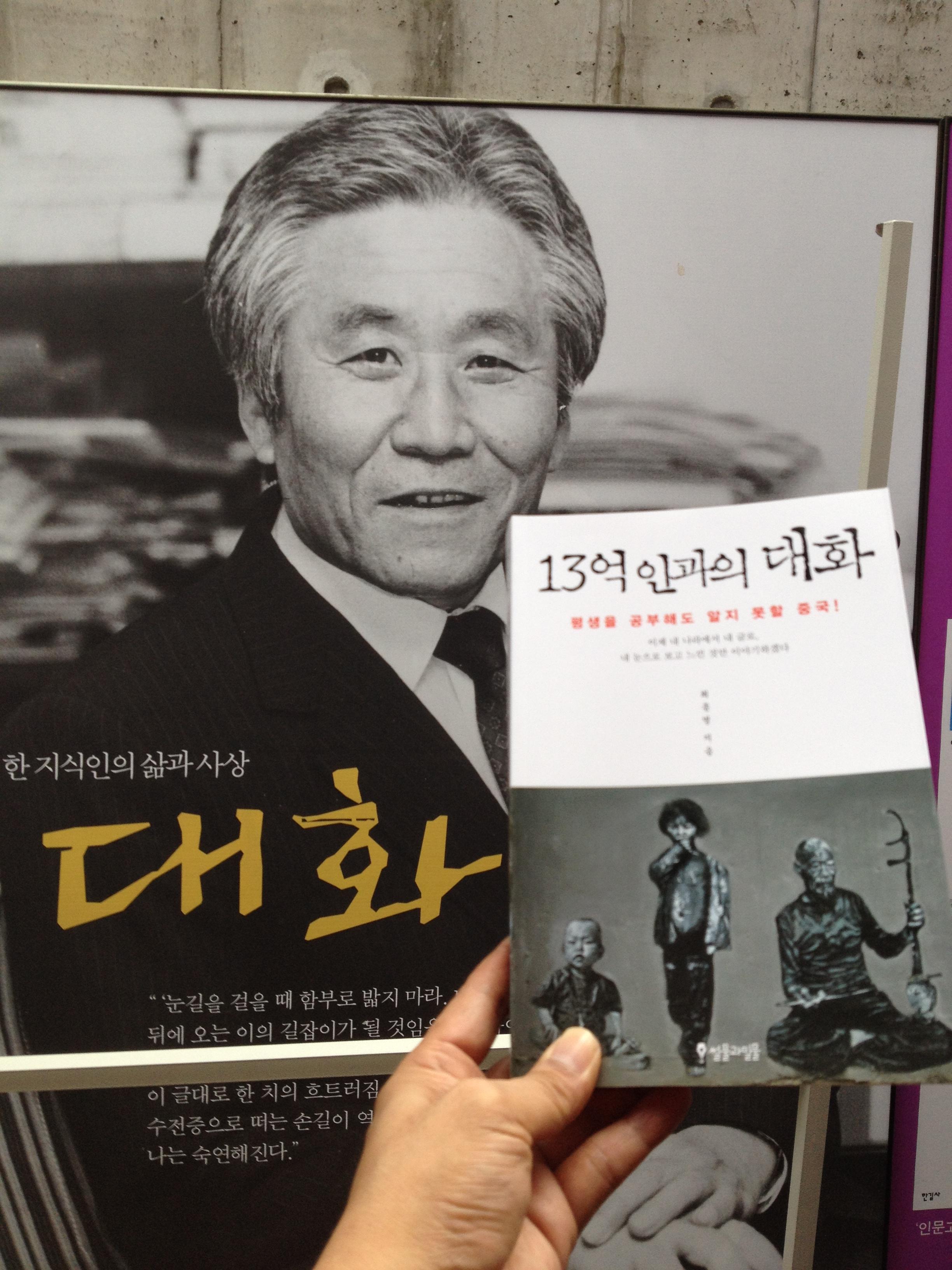 저녁 8시 약속이 이 부근이라 기다리려고 한길사에 왔는데, 리영희 선생님의 『대화』 포스터가 있네요. 늘 마음으로 존경하옵는 선생님과 만나니 책을 드리고 싶은 마음이 들었습니다. 우연히 들어왔는데, 책 읽으려고 들고 온 책도 한길사의『중국인이야기3』이고 정말 재밌네요. 책 표지는 말씀 드린대로 북경 798예술구의 담벼락이고, 뒷표지 위의 작은 그림은 서안의 대안탑 남쪽 문화거리의 당나라 진군나팔입니다. 아래 하늘 아래 건물은 승덕 티베트 소포탈라 궁입니다.