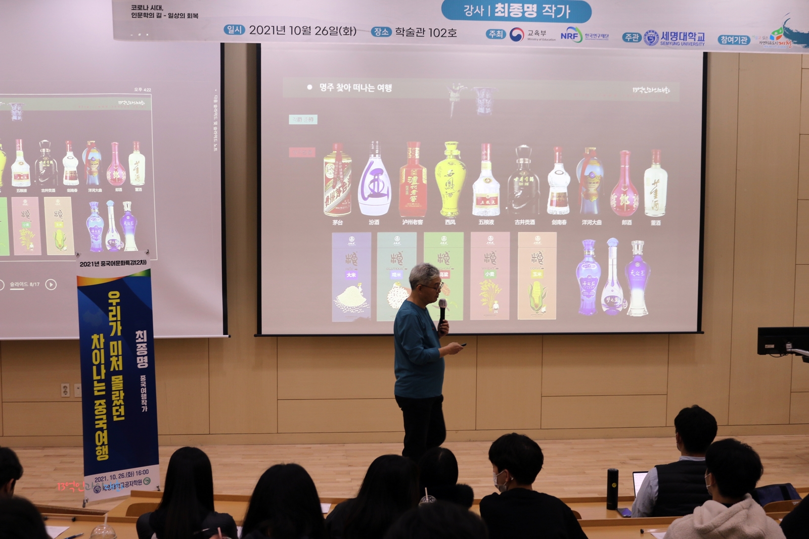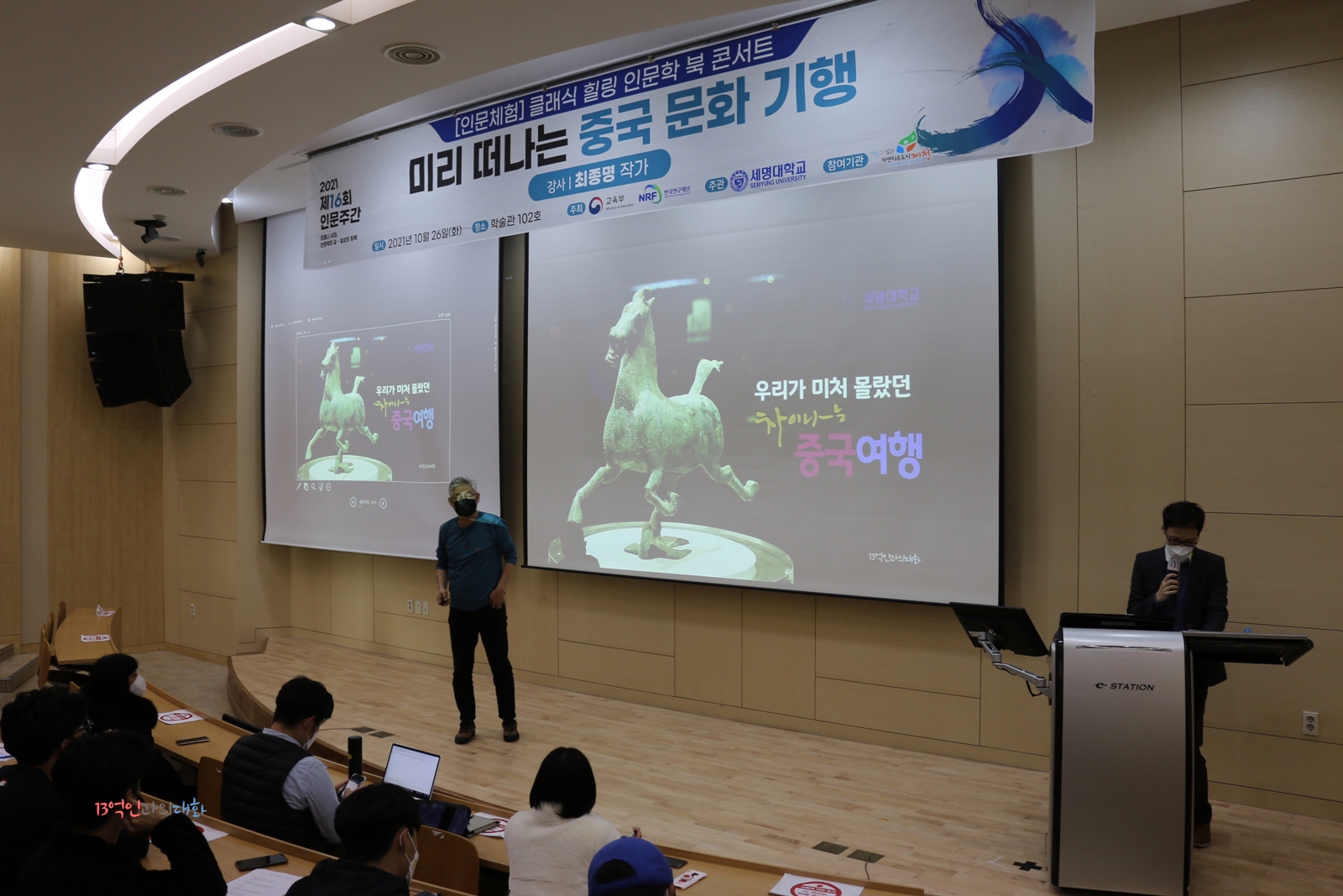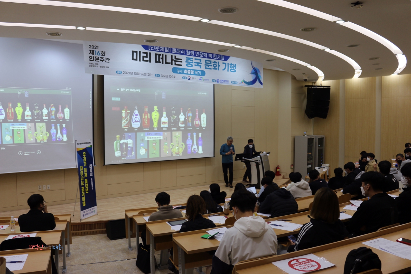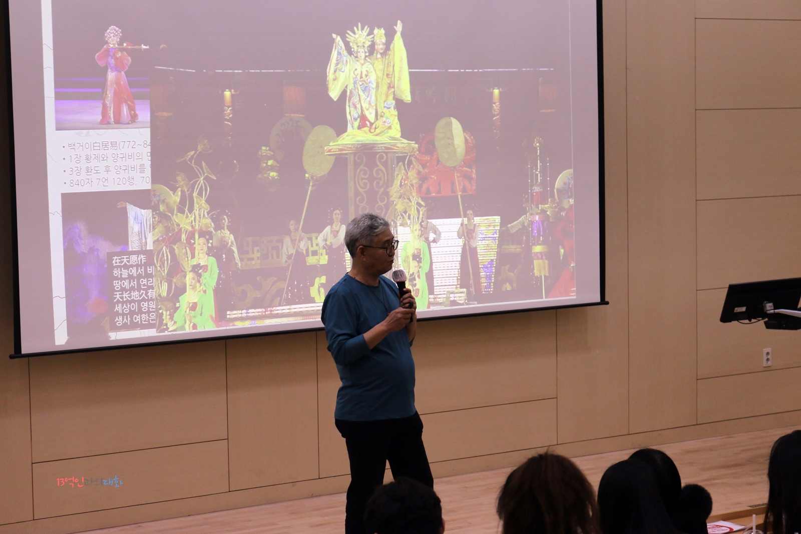 10월 26일 제천 세명대학교에서 열린 문화 특강. 공자학원 중국인 선생님이 찍은 사진입니다. 세명대학교는 장시江西· 난창南昌의 중의대학교와 자매결연을 맺고 있습니다. 난창에서 오신 중국인 선생님과 세명대학교 국제언어학부 교수님과 함께 인증 등. 옆으로 넓은 강의실이라 시선을 좌우로 살피며 강의를...