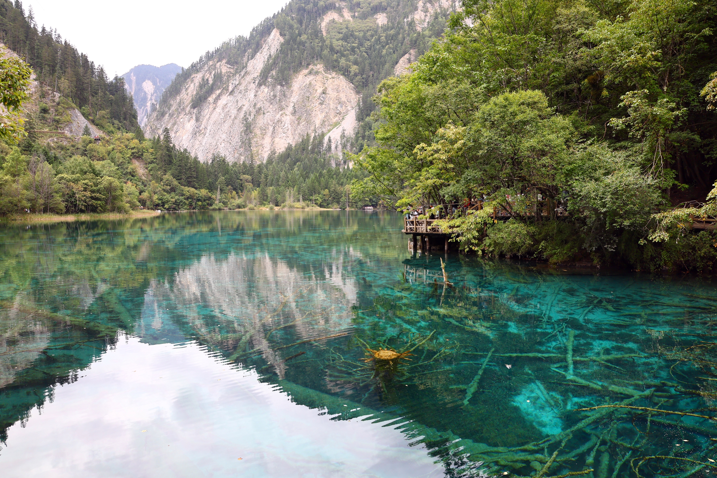 구채구일절九寨沟一绝이라 불릴 정도로 가장 아름다운 호수다. 수심이 5m에 이르는 넓은 호수를 한바퀴 돌며 사방에서 영롱한 물빛에 반영된 나무와 풀, 산봉우리와 함께 물속에 잠긴 고목을 관람한다.