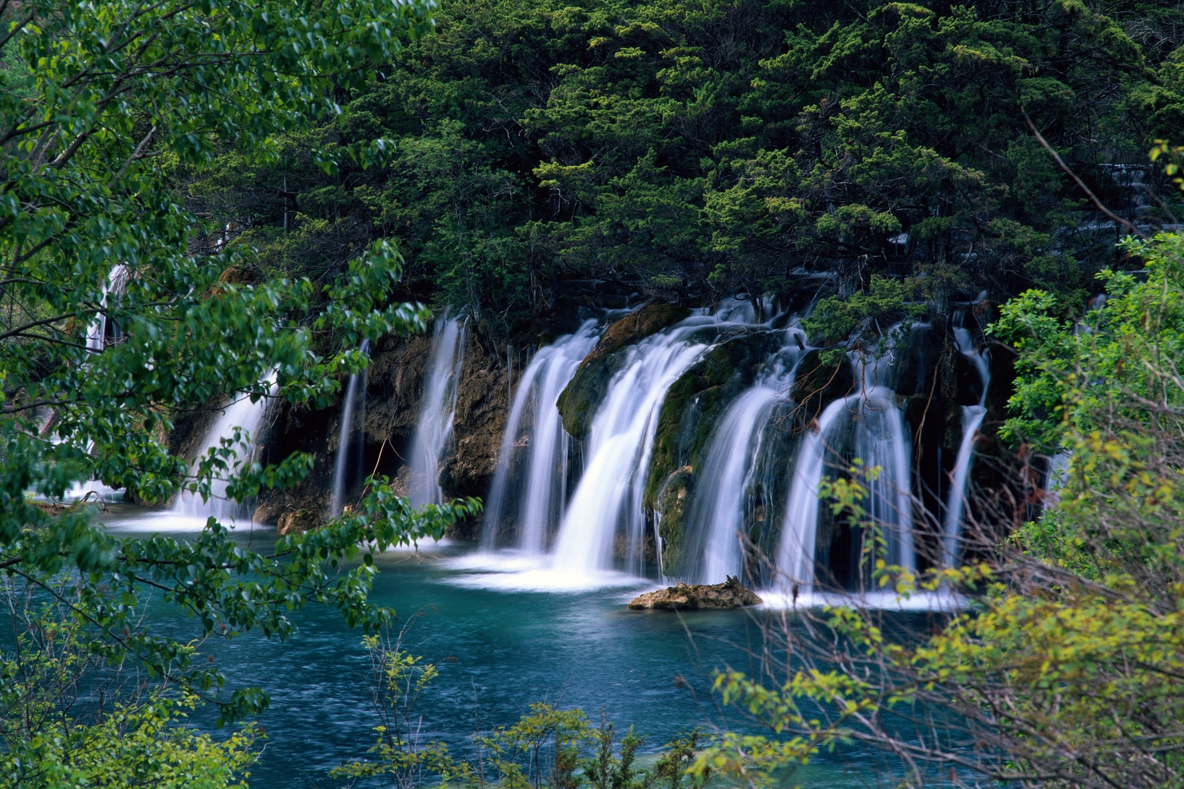 Y자 형태 중 아랫부분에 위치한 관광지로 수정군도树正群海와 수정폭포树正瀑布로 나눠져 있다.
