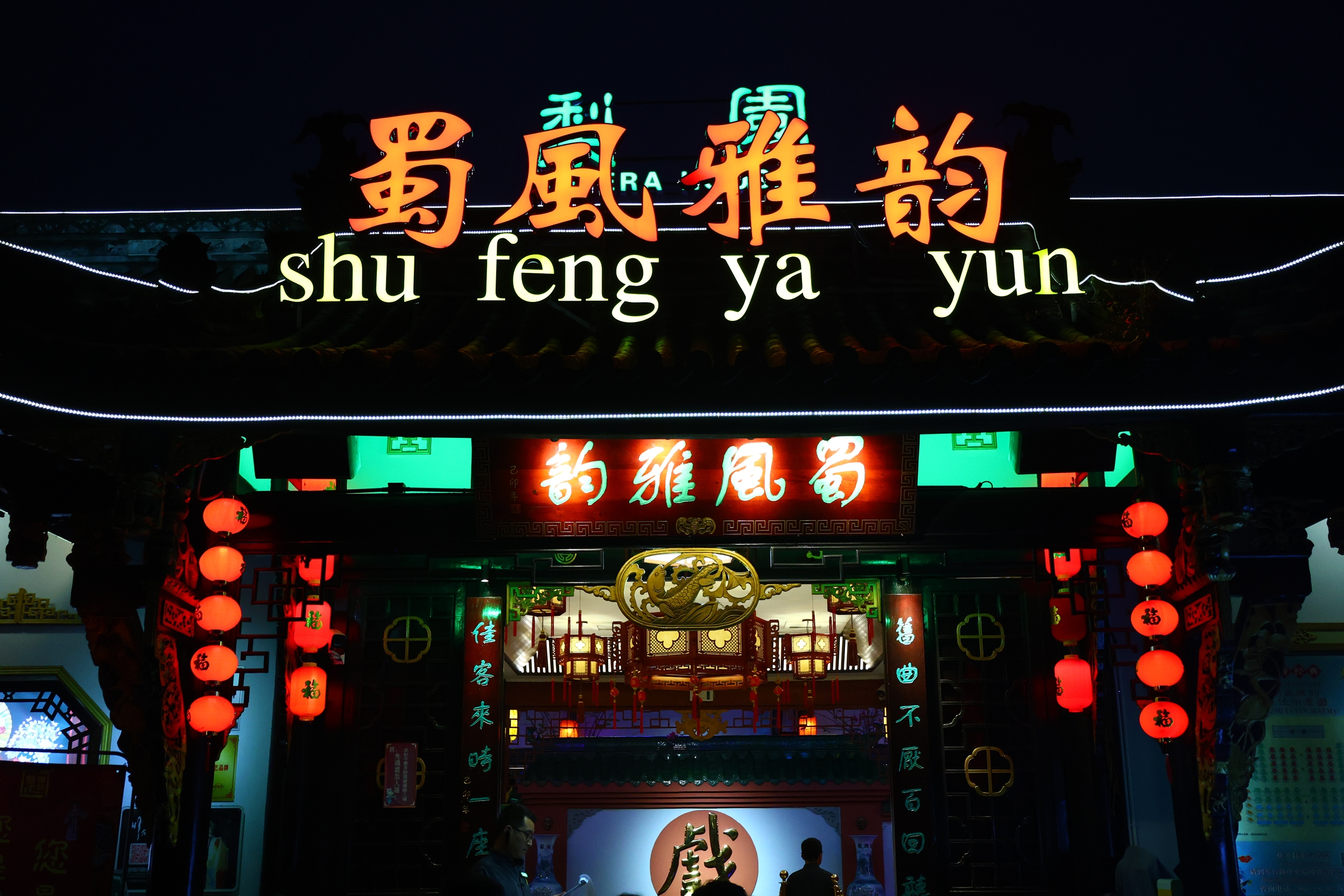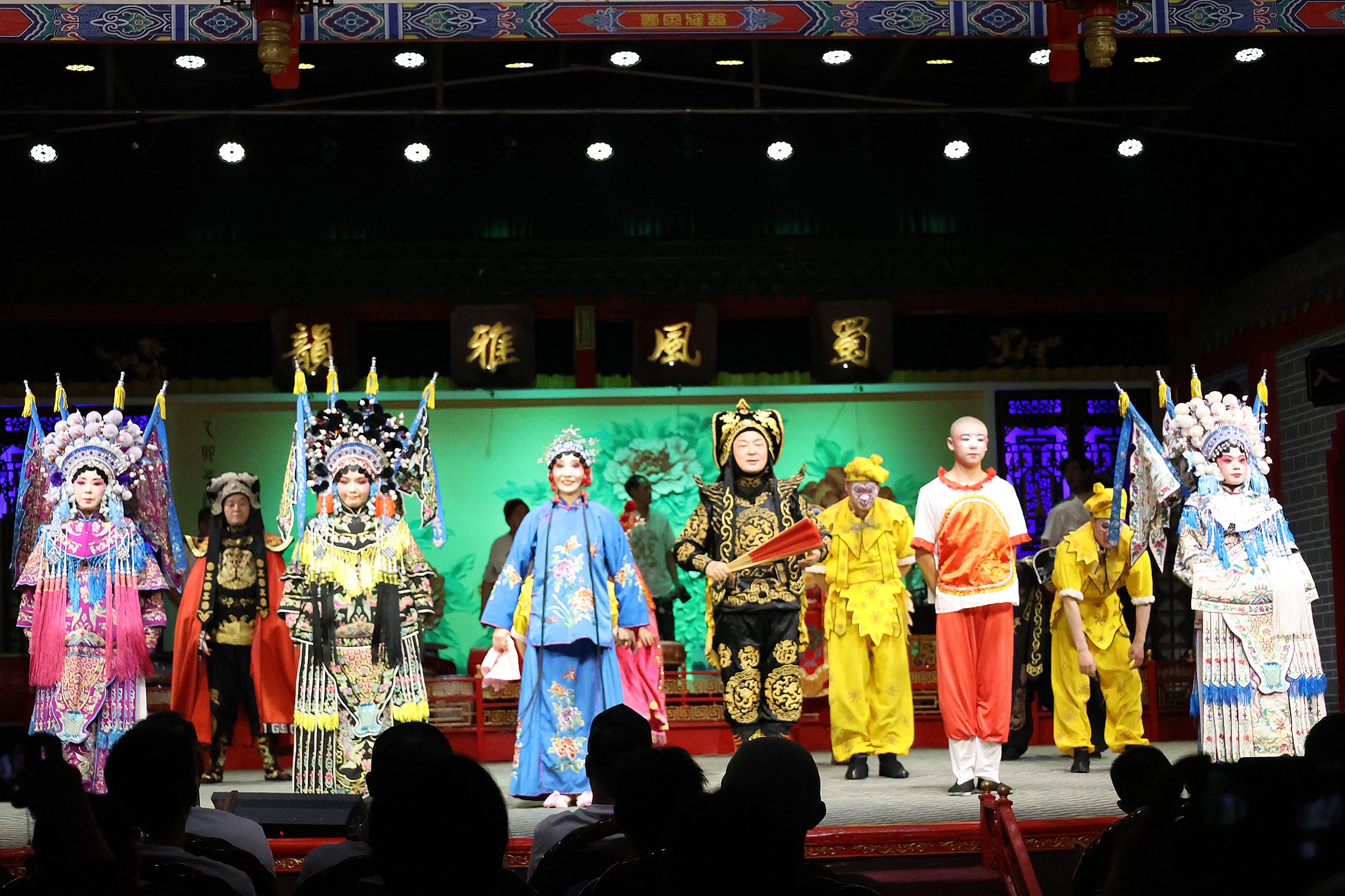쓰촨의 무대극을 대표하는 변검토화变脸吐火를 비롯해 손으로 그림자를 연기하는 수영희手影戏, 코믹한 전통극으로 어릿광대 길들이기 곤등滚灯, 사천 무대극 몇가지를 묶어 보여주는 토막극经典戏曲 등 화려한 공연이 펼쳐진다.
