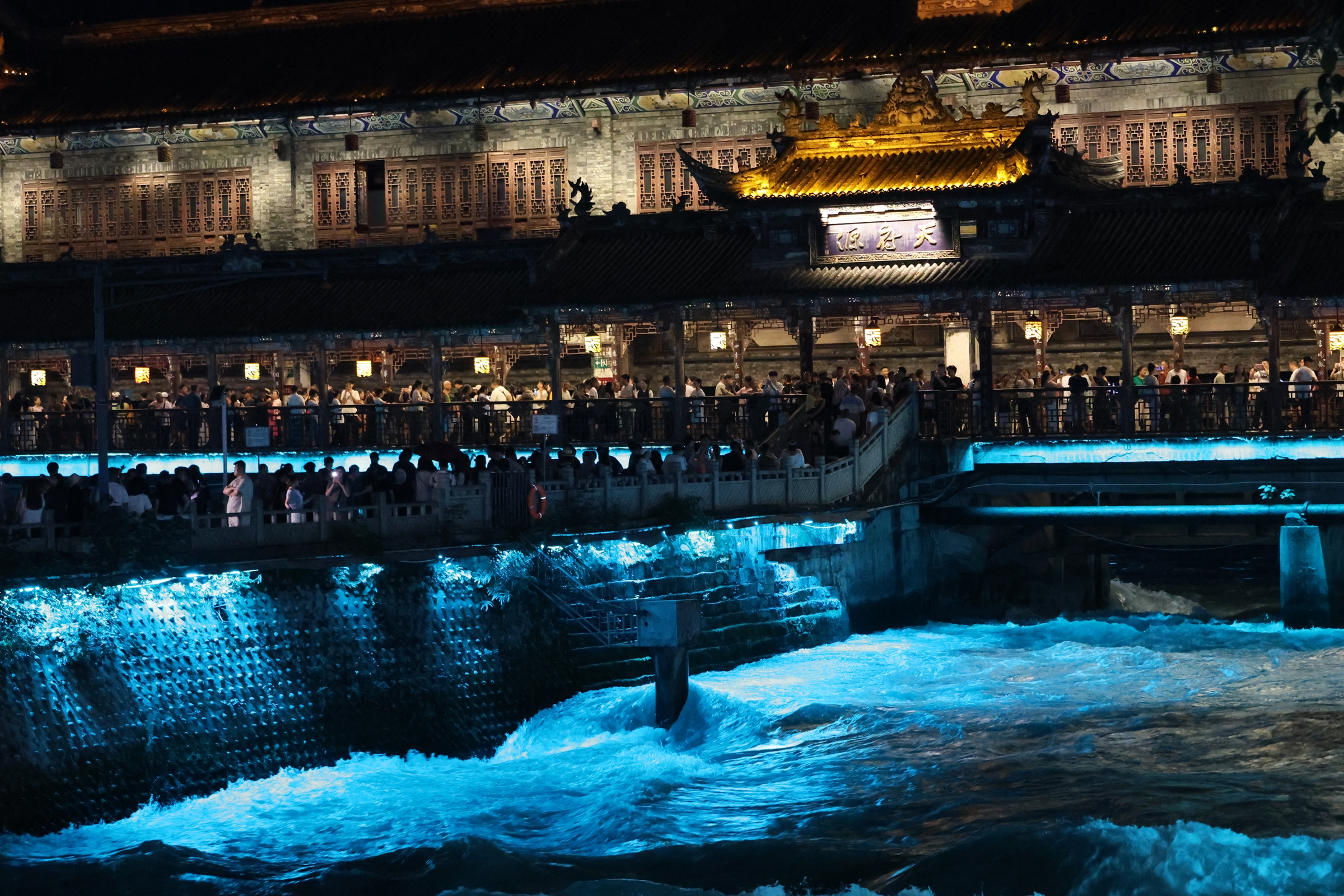 북위 시대 건축돼 약 1,500년의 역사를 지닌 고성으로 산에서 내려온 물을 품은 생활 도장이란 칭호가 붙었다. 2008년 5.12 원촨대지진汶川大地震 이후 다시 중건했다. 주민이 거주하는 번화한 상업 거리이며 폭포처럼 흐르는 포양하蒲阳河의 남교南桥 야경이 아름답다.